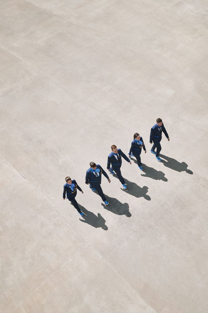 Además, el diseñador Ricky Sarkany estuvo a cargo del diseño del calzado, unas zapatillas inéditas con la marca de la aerolínea de bandera. Todas las nuevas piezas llevan en la parte frontal la paleta de colores que distingue a la marca: el celeste y blanco para los uniformes de vuelo, y el azul y blanco representando al personal de tierra.