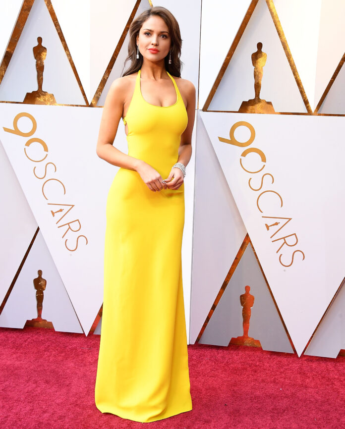 Por último, para asistir a la Gala MOCA de este año en The Geffen Contemporary, en Los Ángeles, Eva Longoria eligió un conjunto amarillo a juego que consistía de una top strapless con escote corazón y una falda larga amarilla brillante que cubría sus tobillos, dejando suficiente espacio para vislumbrar su calzado: un par de tacos plateados metalizados. La gala anual del MOCA tuvo lugar este mes por primera vez desde 2019 debido a la pandemia de COVID-19. Artistas y celebridades se dieron cita en el museo para la clausura de la exposición de Piplotti Rist. Al igual que Longoria, muchos de los asistentes se vistieron con colores llamativos y brillantes en honor a la exhibición multimedia de Rist.