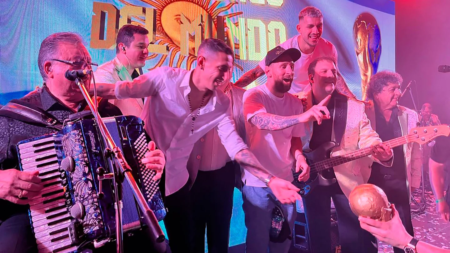 Los Palmeras, la K’onga y La Mosca, con su ya conocido hit sobre la Selección Argentina que acompañó a los argentinos durante todo el Mundial, fueron las bandas que musicalizaron “La fiesta de los campeones”. Días atrás, integrantes de Los Palmeras se habían mostrado junto al 10 argentino en un cumpleaños de la familia Messi.