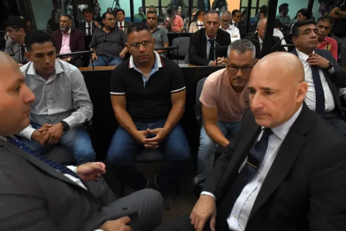 Los efectivos policiales durante la etapa de alegatos en el juicio.