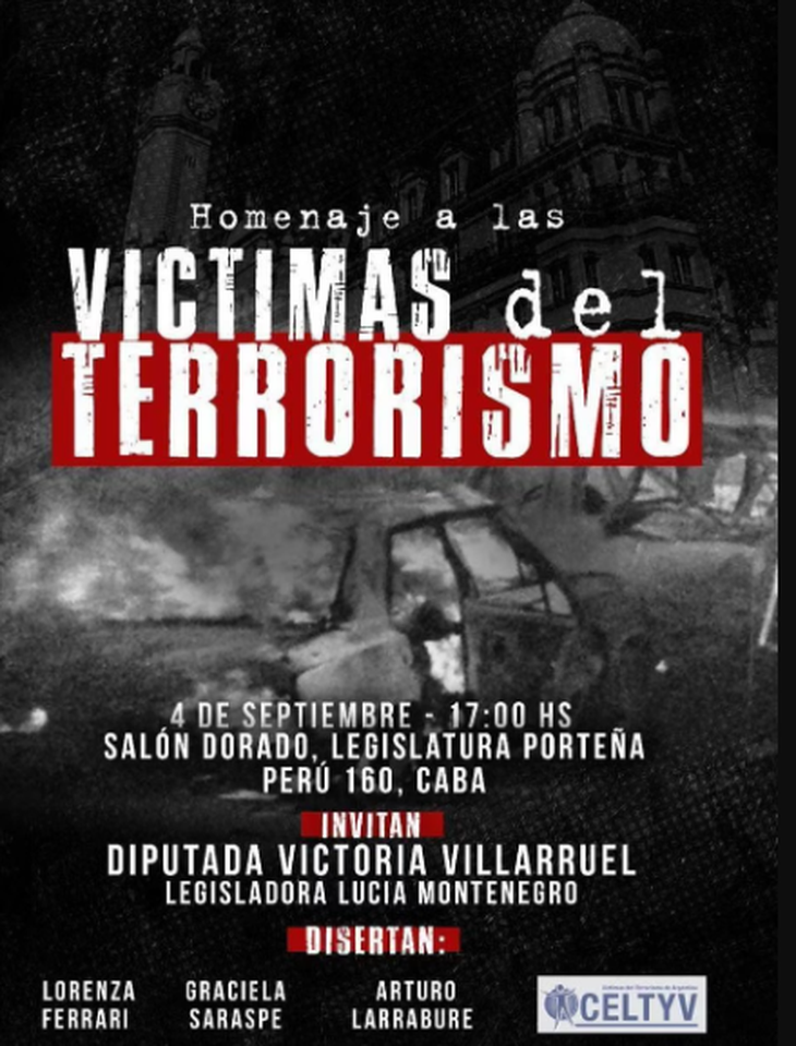 “El lunes 4 de septiembre se realizará en la Legislatura Porteña un acto en homenaje a “Las Víctimas del Terrorismo”, encabezado por la Legisladora Lucía Montenegro y la Diputada Nacional y candidata a Vicepresidenta por la Libertad Avanza, Victoria Villarruel. Es importante destacar que en nuestro rol de legisladores agotamos todas las instancias institucionales disponibles para evitar la realización de este evento y que nuestros planteos fueron desoídos por las principales autoridades de esta Casa Legislativa“, agregaron.