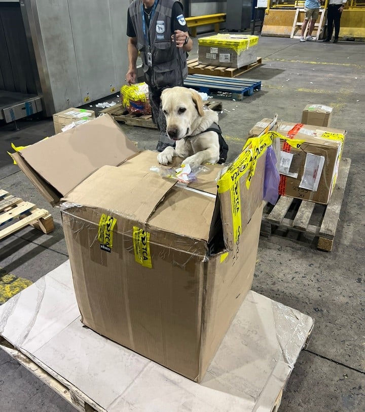 La incautación tuvo lugar en el Aeropuerto Internacional de Ezeiza cuando agentes especializados de la Dirección General de Aduanas-AFIP llevaron a cabo el procedimiento, producto de sospechas de presencia de estupefacientes en un paquete que había ingresado al país vía courier.