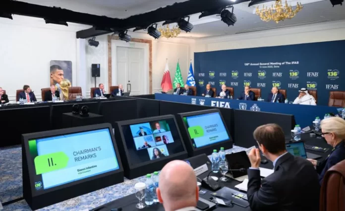 La AGM, presidida por el presidente de la FIFA, Gianni Infantino, y a la que asistieron representantes de la FIFA, la FA, la FA irlandesa, la FA escocesa, la FA de Gales y la administración de la IFAB, también discutió los ensayos en curso de sustitutos por conmoción cerebral, posibles alternativas al fuera de juego y los últimos desarrollos tecnológicos para apoyar a los árbitros.