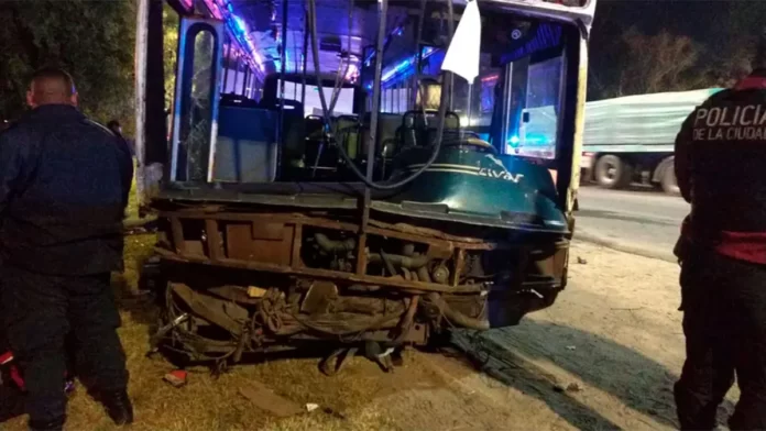Después, la escena se trasladó al Camino de Cintura, donde el hombre colisionó con una impresionante cantidad de vehículos en la esquina con San Martín, en Luis Guillón: de acuerdo con las fuentes consultadas por este medio, el hombre chocó contra al menos 16 autos particulares, una ambulancia y cuatro móviles policiales. Fue luego de que perdiera el control a raíz de que los uniformados que lo seguían dispararan contra los neumáticos y el motor del micro escolar. De acuerdo con las imágenes que se dieron a conocer, el impacto fue violento. La parte delantera del vehículo robado terminó completamente destruida.