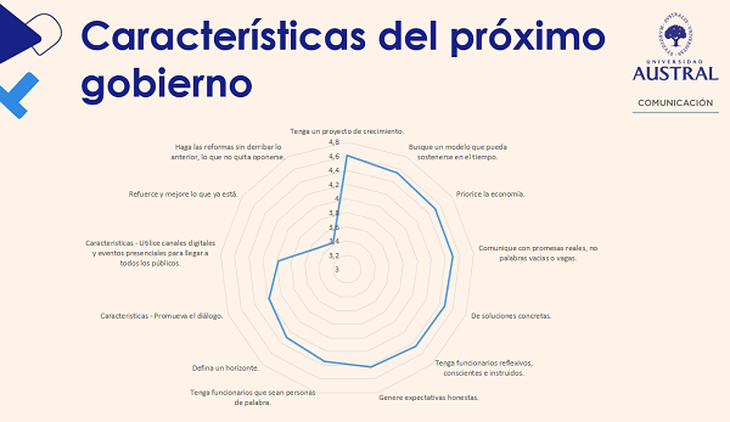 Además, el rango etario más joven esperan que el próximo gobierno se caracterice por tener un proyecto de crecimiento sostenible con la prioridad puesta en economía, mientras que el dólar se presenta como una cuestión secundaria y se relaciona con la generación de empleos de calidad.